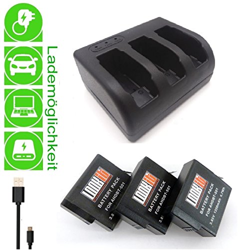 Zum Preis von ca 44€ bekomme ich bei dem original Hersteller gerade einmal 2 Akkus. Hier bekommen ich eine Ladestation die gleichzeitig 3 Akkus laden kann welche im Lieferumfang auch noch enthalten sind und welche die selbe akkulaufzeit wie die Originale bieten. Klare Empfehlung für die Gopro Hero 5 mit der Firmware 1.55 oder älter !!! Funktioniert auch mit der Version 1.55 !!!!(Micro usb kabel ist enthalten)